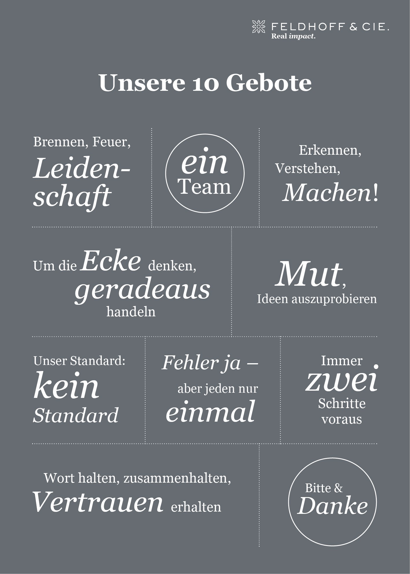 2003 als Ein-Mann-Firma gestartet ist Feldhoff & Cie. mittlerweile zu einem Unternehmen mit über 30 Mitarbeitenden herangewachsen. Nur gemeinsam sind wir zu dem geworden, wer wir heute sind: die führende Kommunikationsberatung in der Immobilienwirtschaft.