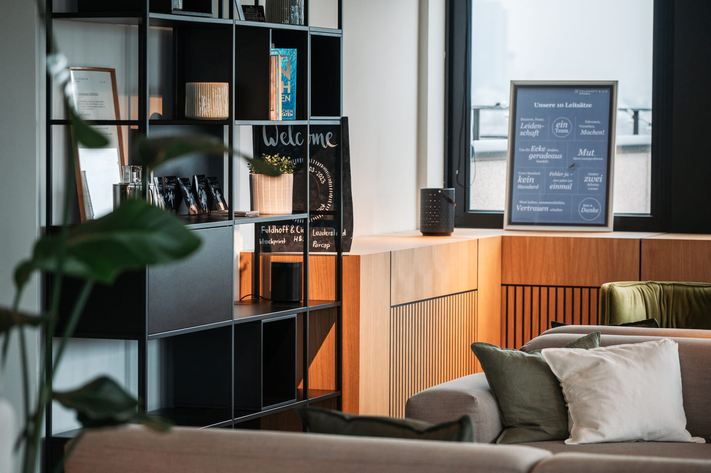 Auf drei Etagen inklusiver einer beeindruckenden 190 qm großen Dachterrasse mit Skyline-Blick versammeln wir nicht nur das Team von Feldhoff & Cie., sondern nehmen auch unsere Schwesterfirmen blackprint, Hendricks & Schwartz, Leaderslead Advisory und PARCAP mit in die neuen Flächen. Wir freuen uns auf noch mehr Nähe und Kooperation unserer Gruppenunternehmen!